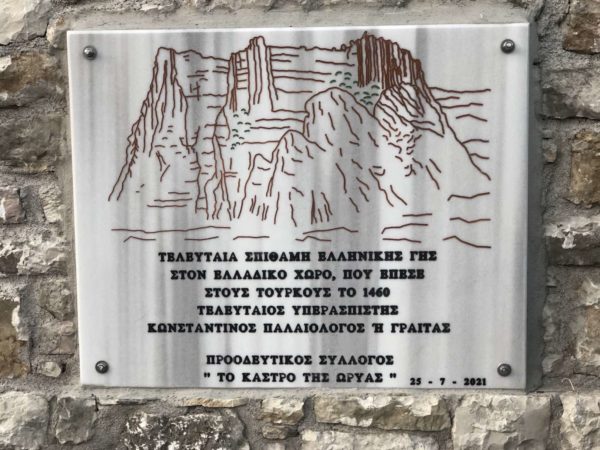 Μετά την ομιλία του Σεβασμιωτάτου απεκαλύφθη η μαρμάρινη στήλη, όπου αναγράφεται το ιστορικό της πτώσεως του κάστρου της Ωριάς, του Σαλμενίκου.