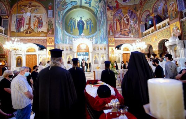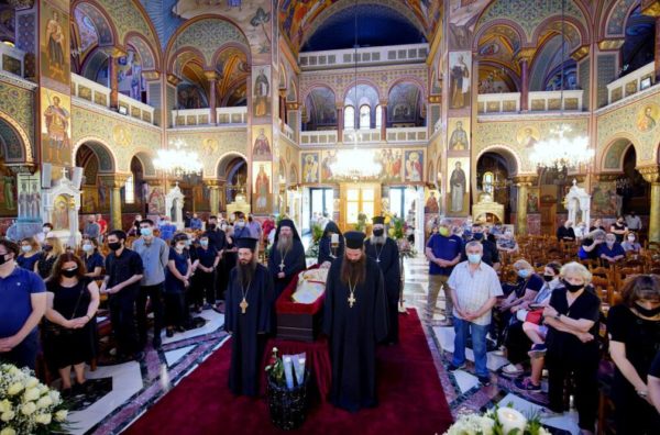 Σε κλίμα βαθιάς συγκίνησης τελέστηκε σήμερα Τετάρτη 30 Ιουνίου 2021 η εξόδιος Ακολουθία του μακαριστού Πρωθιερέως Ιωάννη Θεοδωρόπουλου, στον Καθεδρικό Ιερό Ναό Αγίας Τριάδος Πειραιώς. Παρέστησαν οι Σεβασμιώτατοι Μητροπολίτες Κρήνης κ.Κύριλλος, Πτολεμαΐδος κ. Εμμανουήλ και ο Μητροπολίτης Πειραιώς κ. Σεραφείμ ο οποίος αναφερόμενος στην 25ετή διακονία του μακαριστού επεσήμανε πως αυτή ήταν άοκνη και ανύστακτη για την Εκκλησία και για τον Καθεδρικό Ναό.