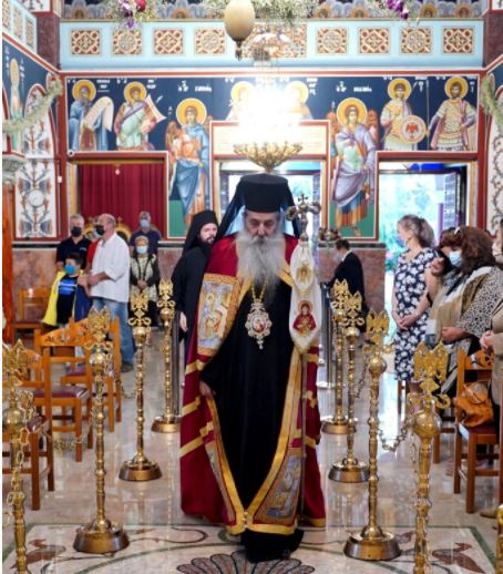 Ο Σεβασμιώτατος κατά την διάρκεια του κηρύγματός του, απευθυνόμενος στους πιστούς ανέφερε ότι «σήμερα τιμούμε την εύρεση μιας ιεράς εικόνας, ενός ιερού απεικάσματος της Υπεραγίας Θεοτόκου που επισυνέβη στις αρχές του 14ου αιώνα στην ωραία νησον των Κυθήρων όπου εκεί κατεγράφη το ιστορικό αυτό γεγονός, όταν ένας απλούς βοσκός εύρε την χαριτοβρυτον εικόνα μέσα στην περιοχή των Μυρτιδίων όπου οι μυρσίνες έχουν την μορφήν δένδρων και όχι θάμνων κατά το ειωθός. Σηματοδοτήθηκε αυτή η εύρεσις με πλήθος θαυμάτων τα οποία καταγράφονται έκτοτε εις τας ιστορικάς δέλτους της τοπικής αλλά και της πανελληνίου οικογενείας».