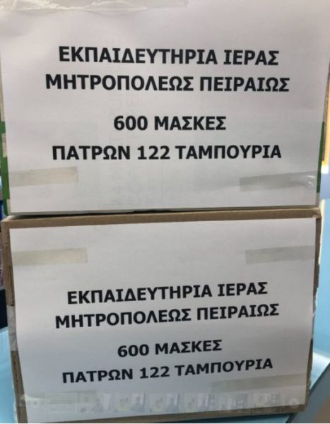 Προσφορά προστατευτικών μασκών στα Εκπαιδευτήρια της Ι.Μ. Πειραιώς