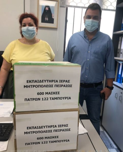Εξακόσιες (600) μάσκες για το εκπαιδευτικό προσωπικό, τους μαθητές και το διοικητικό προσωπικό των Εκπαιδευτηρίων της Ιεράς Μητροπόλεως Πειραιώς, προσέφερε σήμερα Τετάρτη 22 Σεπτεμβρίου 2021 η Περιφερειακή Ενότητα Πειραιά με στόχο να καλυφθεί μέρος των αναγκών και θέλοντας να συμβάλει στην πιστή τήρηση των πρωτοκόλλων, που προβλέπονται προκειμένου τα παιδιά και γενικότερα όσοι απασχολούνται στα Εκπαιδευτήριά να δημιουργούν ένα ασφαλές υγειονομικό περιβάλλον.