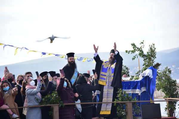 Ο Σεβασμιώτατος, σε όσους νέους έπεσαν στα ύδατα προσέφερε έναν επιστήθιο σταυρό και ένα εικόνισμα των πολιούχων του Κιλκίς ενώ στο πλήθος των πιστών που είχαν κυκλώσει την λίμνη της Δοιράνης, αφού τους επαίνεσαι για την τήρηση των υγειονομικών μέτρων, απευθύνθηκε σε όλους λέγοντας: “Η σημερινή Εορτή της Θεοφανείας μας προσφέρει το υπόδειγμα της ενότητας, το οποίο έχουμε απόλυτη ανάγκη. Αδελφοί μου, ενωμένοι με τον Θεό και μεταξύ μας, ας δημιουργούμε έργα προόδου, εδώ, στην εσχατιά της πατρίδος μας και ας έχουμε βεβαία την παρουσία της Αγίας Τριάδος στις αγαθές πράξεις της ζωής μας. Χρόνια πολλά και ευλογημένα”.