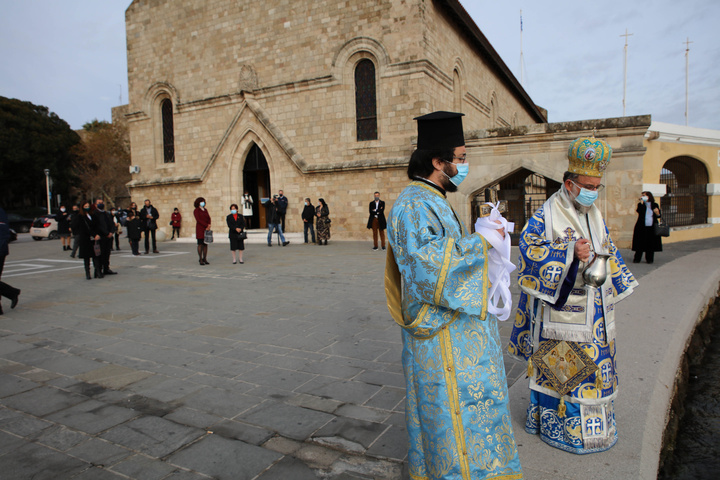 Με ελάχιστους πιστούς και με αυστηρή τήρηση των προβλεπόμενων μέτρων τελέσθηκε η θεία λειτουργία των Θεοφανίων στη Ρόδο.