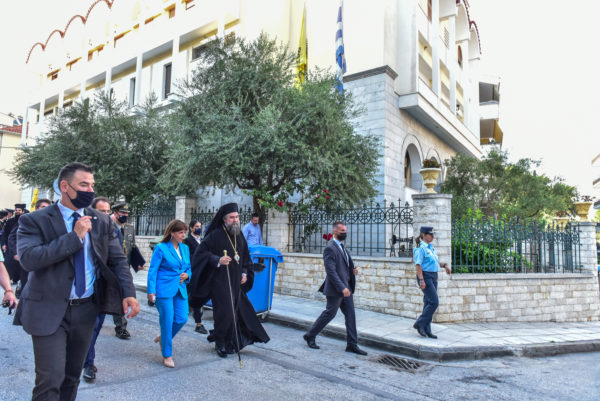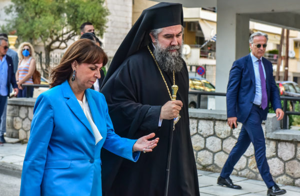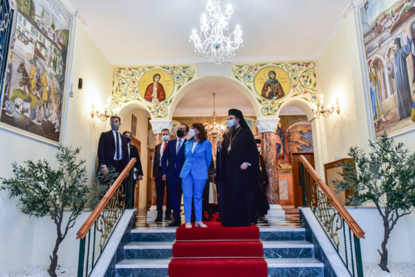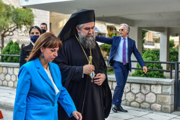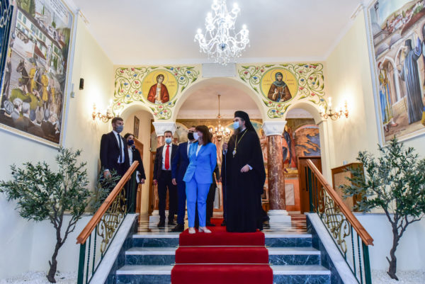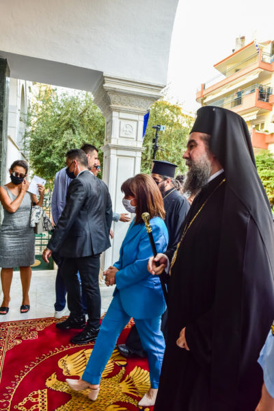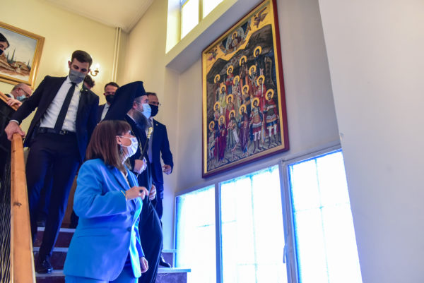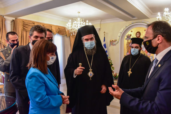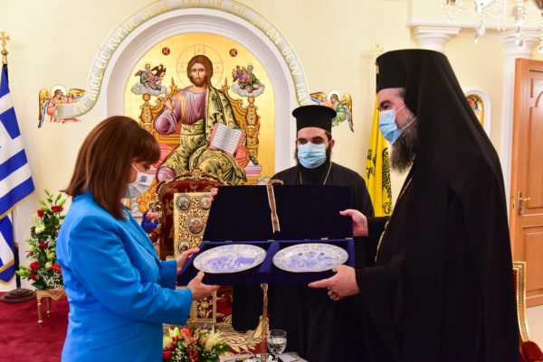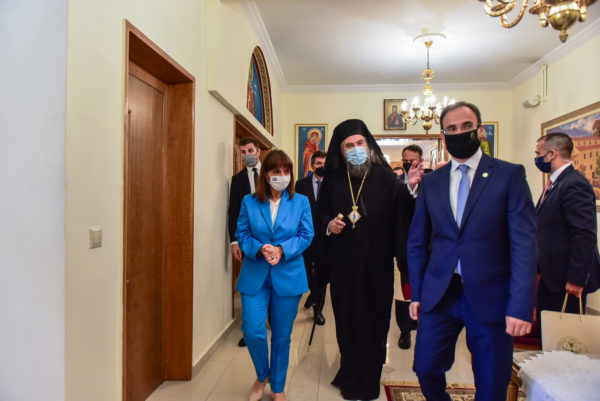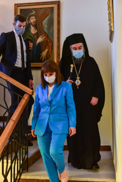 Η κ. Πρόεδρος ευχαρίστησε θερμώς τον Σεβασμιώτατο για την ευγενική υποδοχή και φιλοξενία, καθώς και για την γόνιμη και ιδιαιτέρως ενδιαφέρουσα συζήτηση, τονίζοντας ότι η ομοψυχία του λαού μας συνιστά προϋπόθεση ευημερίας και προόδου της πατρίδος μας και προς αυτή την κατεύθυνση η προσφορά της Εκκλησίας είναι ιδιαιτέρως σημαντική.