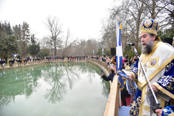 Επίκεντρο του λειτουργικού εορτασμού της περιφήμου και μεγαλειώδους αυτής εορτής στην Εκκλησία των Σερρών απετέλεσε ο ιερός Μητροπολιτικός Ναός Παμμ. Ταξιαρχών, όπου, σήμερα Πέμπτη 6 Ιανουαρίου 2022, ιερούργησε ο Σεβ. Μητροπολίτης Σερρών και Νιγρίτης κ. Θεολόγος και ακολούθως, συμπροσευχητικώς παρόντων του Σερραίου Υπουργού Υποδομών και Μεταφορών κ. Κ. Αχ. Καραμανλή, των Βουλευτών του Νομού Σερρών κ.κ. Φ. Αραμπατζή, Θ. Λεονταρίδη, Αν. Χατζηβασιλείου και Ελ. Αβραμάκη, του Αντιπεριφερειάρχου Σερρών κ. Π. Σπυροπούλου, του Δημάρχου Σερραίων κ. Αλ. Χρυσάφη, των στρατιωτικών, αστυνομικών και λοιπών αρχών καθώς και του πιστού λαού του Θεού, ετέλεσε την ακολουθία του Μεγάλου Αγιασμού των υδάτων, τηρουμένων των προβλεπομένων κανόνων υγειονομικής προστασίας.