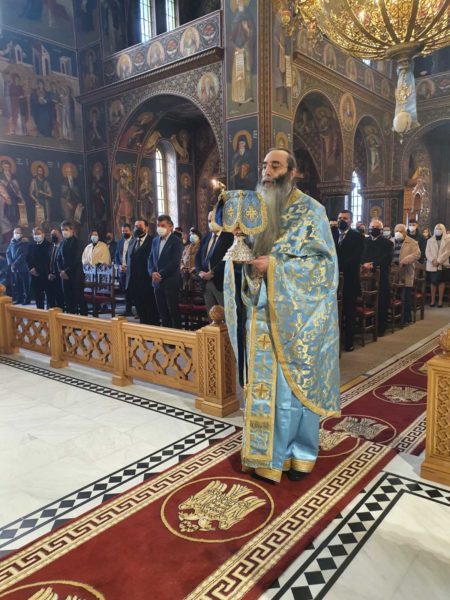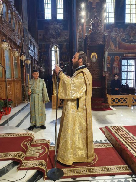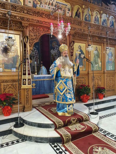 Στην σύντομη προσλαλιά του προς το πολυπληθές εκκλησίασμα, ο κ. Θεόκλητος μίλησε για την σημασία της εορτής των Θεοφανείων και την δυνατότητα που μας δίνει ο Θεός με το γεγονός αυτό, να τον δεχθούμε στις καρδιές μας αφού πρώτα δημιουργήσουμε οι ίδιοι τις προϋποθέσεις που απαιτούνται. «Ἐπεφάνη ἡ Χάρις τοῦ Θεοῦ ἡ σωτήριος πᾶσιν ἀνθρώποις» σημείωσε, “και αυτό είναι που δίνει σε όλη την ανθρωπότητα την χαρά και την αισιοδοξία που χρειάζεται”. “Στην Εκκλησία” τόνισε, “δεν υπάρχουν διακρίσεις μεταξύ των ανθρώπων. Όλοι γινόμαστε δεκτοί με τον ίδιο τρόπο και την ίδια αγάπη, με σκοπό την μεταμόρφωση του καθενός μας”.