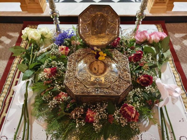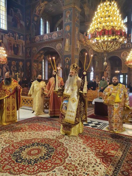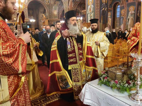 Την ημέρα της εορτής του Αγίου, ο Σεπτός μας Ποιμενάρχης χοροστάτησε κατά την ακολουθία του Όρθρου και εν συνεχεία τέλεσε την Θεία Λειτουργία και την ιερά παράκληση. Η τιμία κάρα ανεχώρησε για την Ιερά Μονή του Αγίου Στεφάνου Μετεώρων, όπου κάθε πιστός έχει την δυνατότητα να προσέλθει και να την προσκυνήσει.