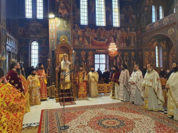 Ακολούθως, ενώπιον της Αγίας Κάρας, ο Σεβασμιώτατος, έψαλλε προς τον Άγιο ιερά παράκληση, η οποία ικετεύει τον Ιερομαρτυρα Χαράλαμπο να απαλλάξει την ανθρωπότητα από την λοιμική νόσο.