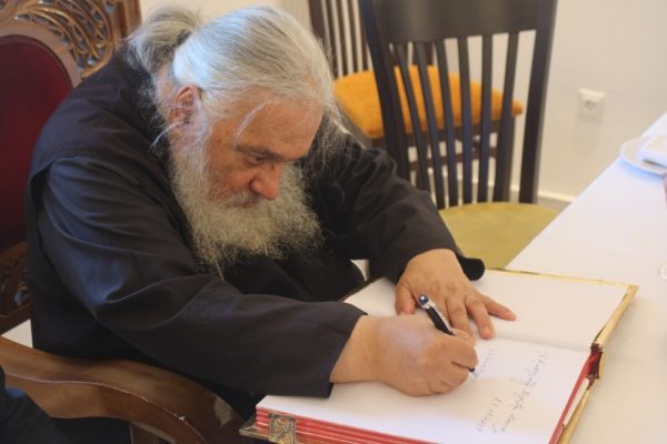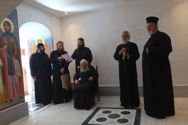 Προσκύνησε δε το διαμορφωθέν Παρεκκλήσιο των νεοφανών Αγίων Πατέρων Πορφυρίου, Παϊσίου και Ιακώβου, τον Παρακλητικό Κανόνα των οποίων, που θα ψαλεί κατά τα εγκαίνια του Παρεκκλησίου στις 14 Οκτωβρίου, κατόπιν σχετικού αιτήματος του Ηγουμένου Αρχιμ. Αλεξίου Παπαδόπουλου, συνέθεσε.