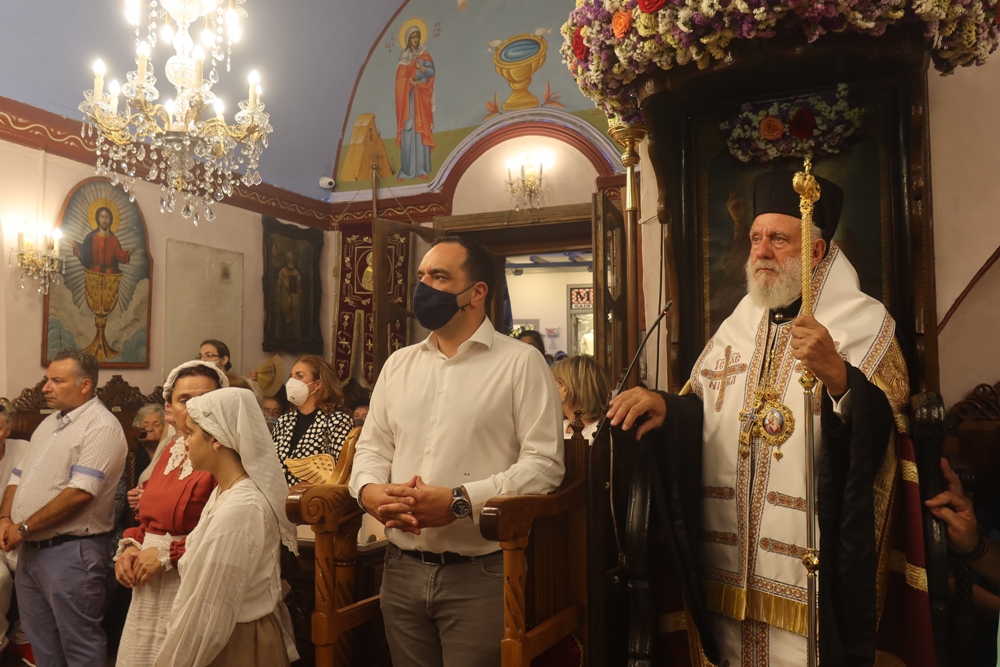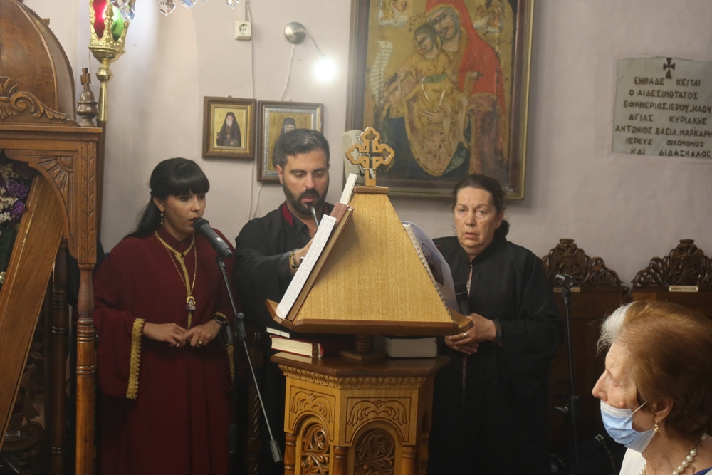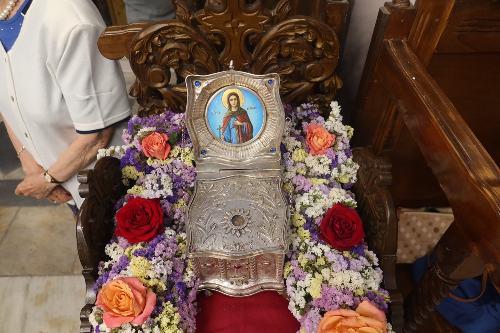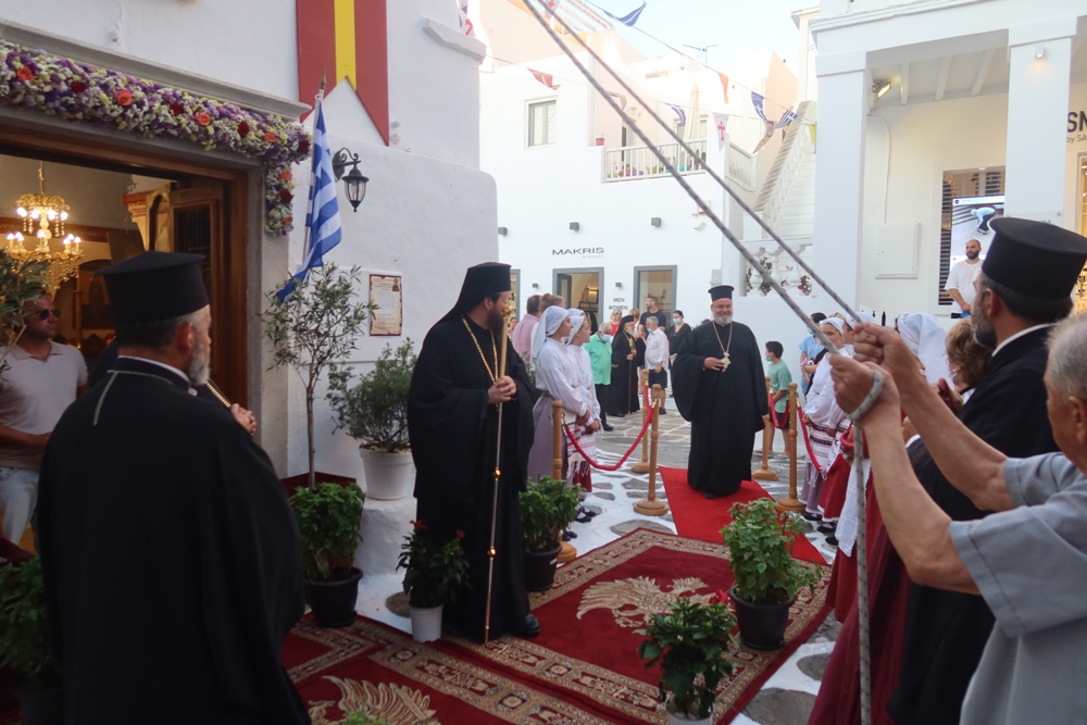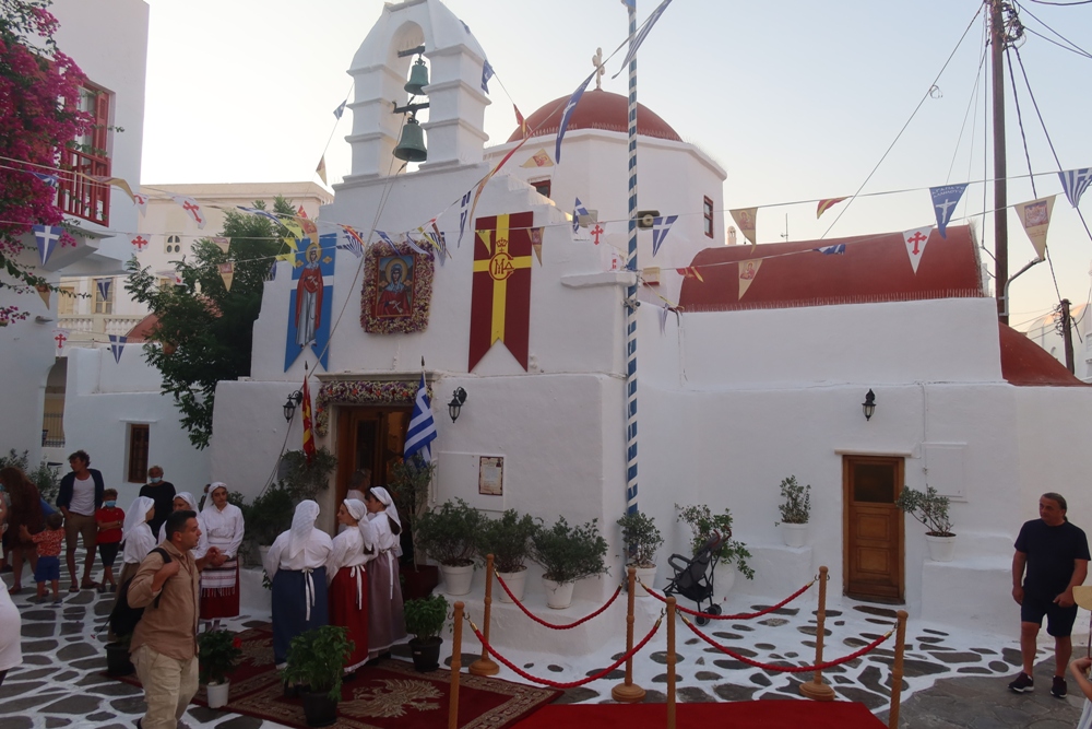 Στον Ενοριακό Ιερό Ναό της Αγίας Κυριακής, στη Χώρα της Μυκόνου, τελέσθηκε το απόγευμα της Τρίτης 7 Ιουλίου 2021, Εόρτιος Εσπερινός, χοροστατούντος του Σεβασμιωτάτου Μητροπολίτου Σύρου κ. Δωροθέου Β΄, με τη συμμετοχή των Εφημερίων της Μυκόνου και του Ηγουμένου της Ιεράς Μονής Παναγίας Τουρλιανής και την παρουσία του Θεματικού Περιφερειάρχη Διαφάνειας κ. Στυλ. Μπρίγγου, του Δημάρχου Μυκόνου κ. Κωνστ. Κουκά, της Προέδρου της Αδελφότητος Ανωμεριτών Μυκόνου κας Φρατζέσκας Κουνάνη, της Προέδρου των Μελών του Πολιτιστικού Συλλόγου Γυναικών Μυκόνου “ΜΑΝΤΩ”, με παραδοσιακές ενδυμασίες, και πολλών πιστών, Μυκονίων και παραθεριστών.