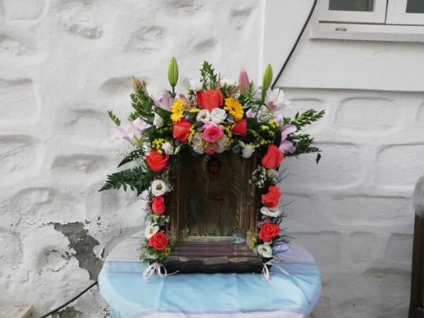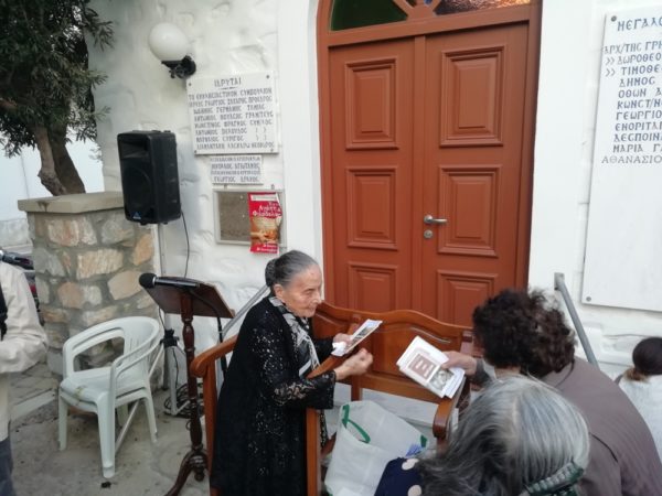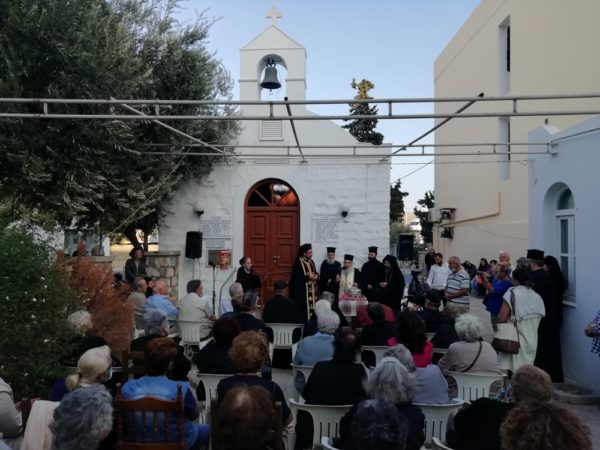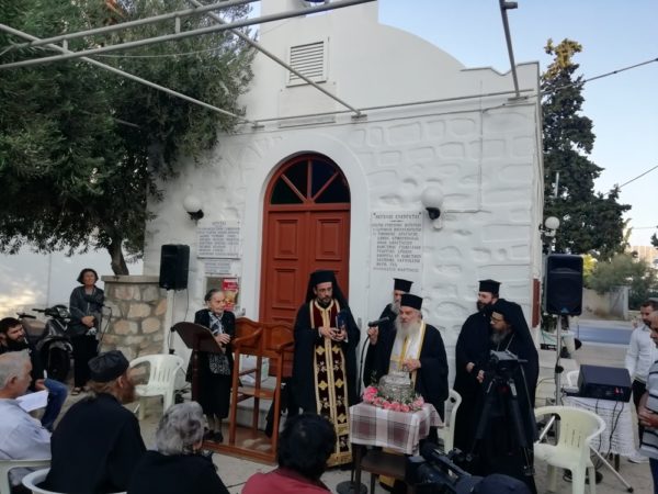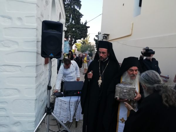 Στην εκδήλωση, την οποία προλόγισε ο Αρχιμ. Βενεδικτος Φραγκογιάννης, είχε εκτεθεί σε προσκύνηση η Τιμία Κάρα του Αγίου Παντελεήμονος, που μετέφερε από την Ιερά Μονή Παναχράντου ο Ηγούμενος, Αρχιμ. Ευδόκιμος Φραγκουλάκης, συνοδευόμενος από τον Αρχιμ. Φιλάρετο Μανταδάκη, και ομίλησε παραστατικά για το Σταυρό, ως πηγή και σύμβολο ζωής, η Υπεύθυνη των Αγιογραφικών Κύκλων Σύρου, ακαταπόνητη κα Αλεξάνδρα Φετουρή.