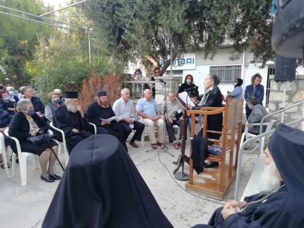 Μίλησε, επίσης, ο Ηγούμενος της Ιεράς Μονής Παναχράντου πατέρας Ευδόκιμος, ο οποίος αναφέρθηκε στην ιστορία της Μονής, και εψάλησαν ύμνοι συνταχθέντες για το συγκεκριμένο γεγονός από τον Θεολόγο κ. Μιχ. Χατζηγεωργίου.