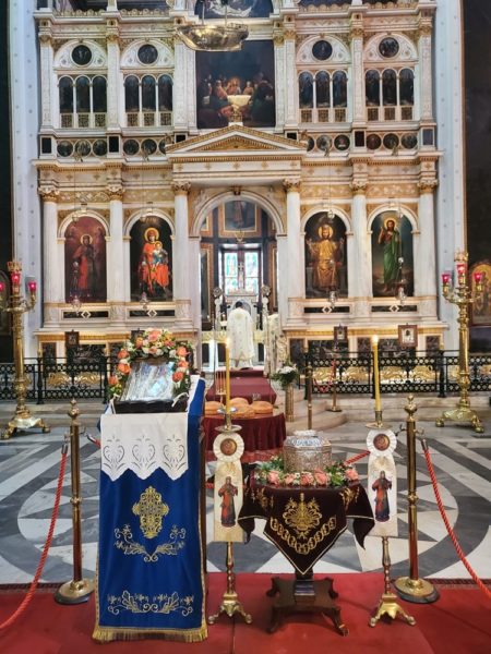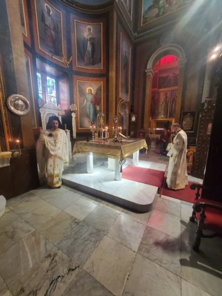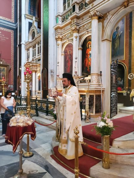Σήμερα το πρωί, η τιμία Κάρα του Αγίου Παντελεήμονος μεταφέρθηκε στον Ιερό Ναό του Αγίου Νικολάου, όπου τελέσθηκε Θεία Λειτουργία με την παρουσία πολλών πιστών.