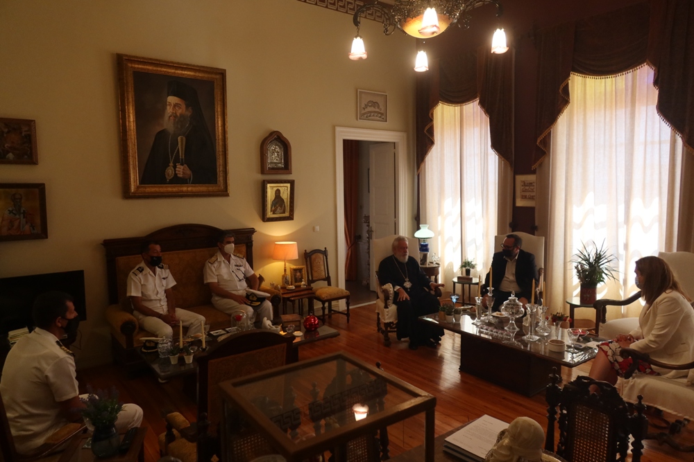 Τον Σεβασμιώτατο Μητροπολίτη Σύρου κ. Δωρόθεο Β’ επισκέφθηκαν εθιμοτυπικά στο Επισκοπείο Ερμουπόλεως η Γενική Γραμματέας Τουριστικής Πολιτικής και Ανάπτυξης κα Βίκυ Λοΐζου και ο Γενικός Γραμματέας Λιμένων, Λιμενικής Πολιτικής και Ναυτιλιακών Επενδύσεων κ. Ευάγγελος Κυριαζόπουλος, συνοδευόμενοι από τις Περιφερειακές και Λιμενικές Αρχές.