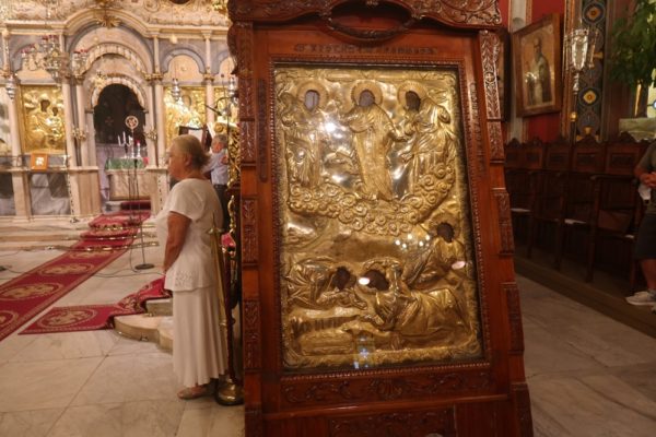 «Γι’ αυτό η Παναγία», προσέθεσε, «κατέχει κεντρική θέση στον Ορθόδοξο Ναό, η Οποία, ως Πλατύτερα των Ουρανών, στην κόγχη του ιερού Βήματος, μεσιτεύει υπέρ των πιστών, και δίπλα στην Ωραία Πύλη τους δίνει τη δυνατότητα να ιερουργήσουν μαζί Της το Μυστήριο της σωτηρίας.