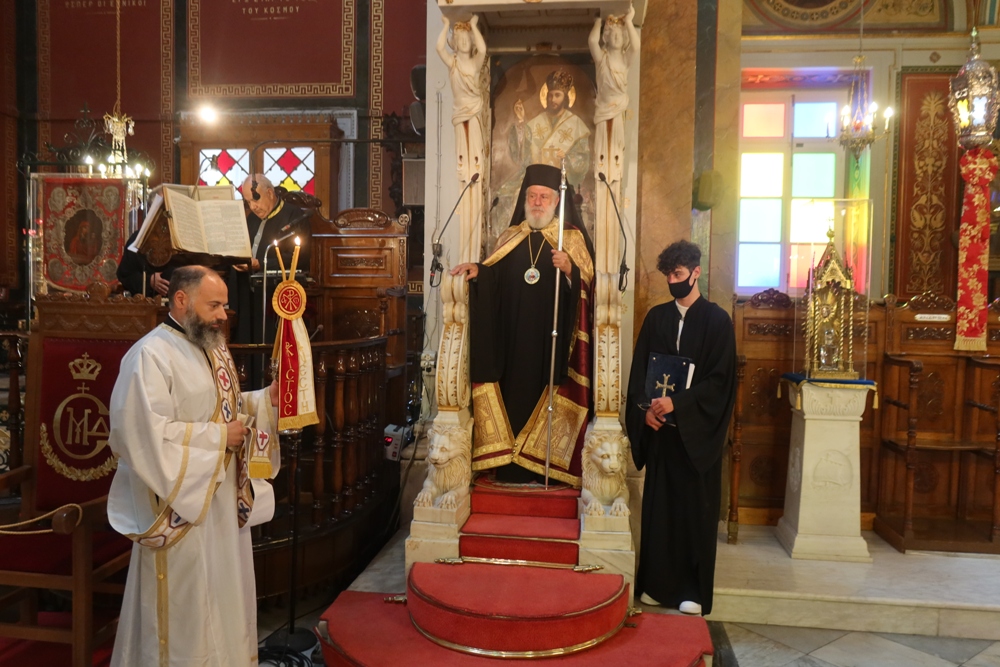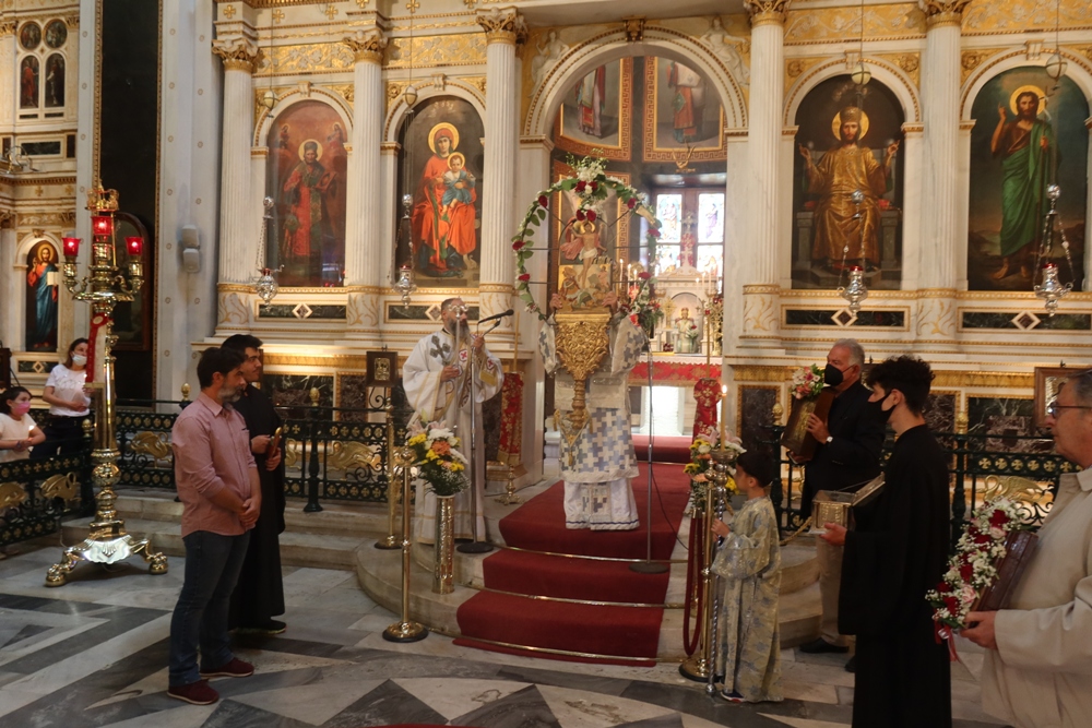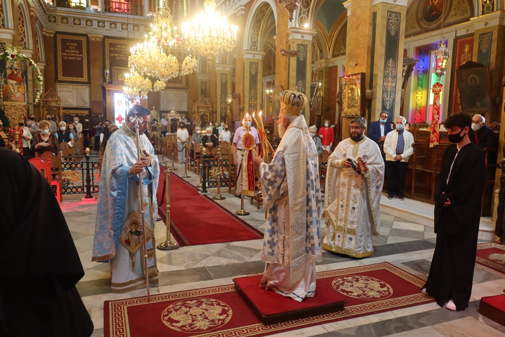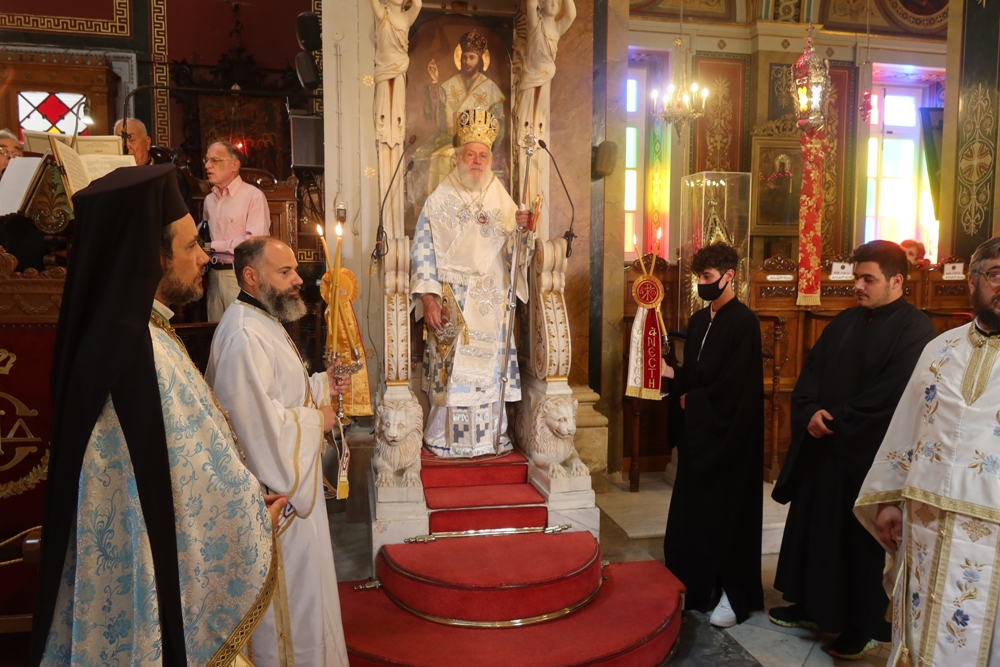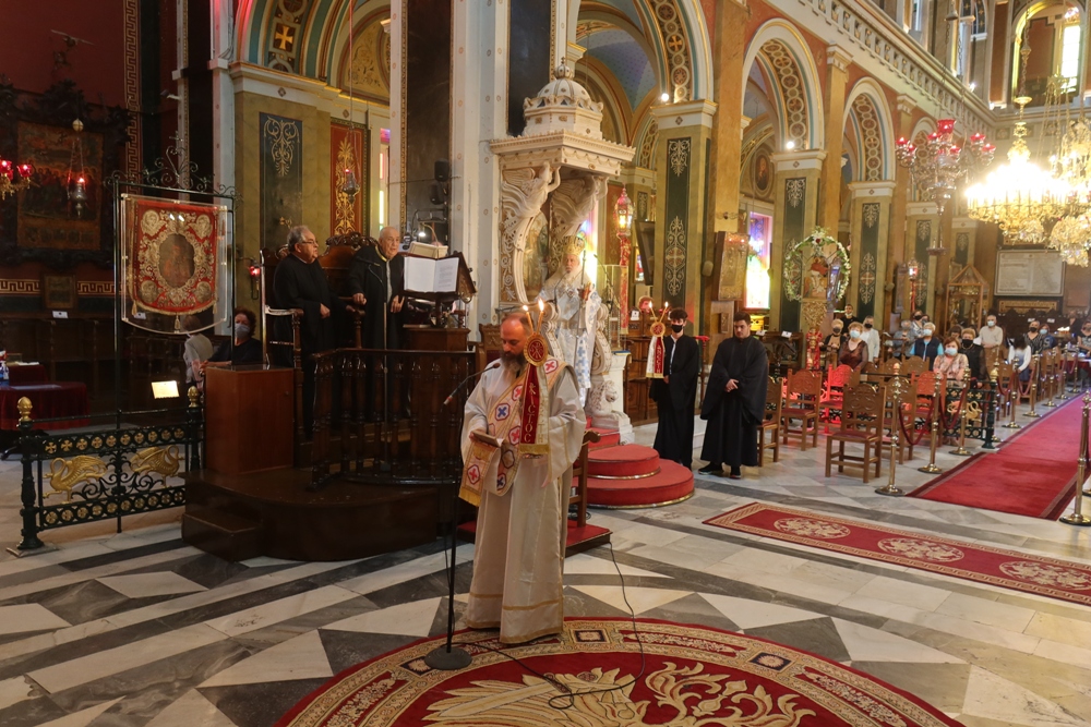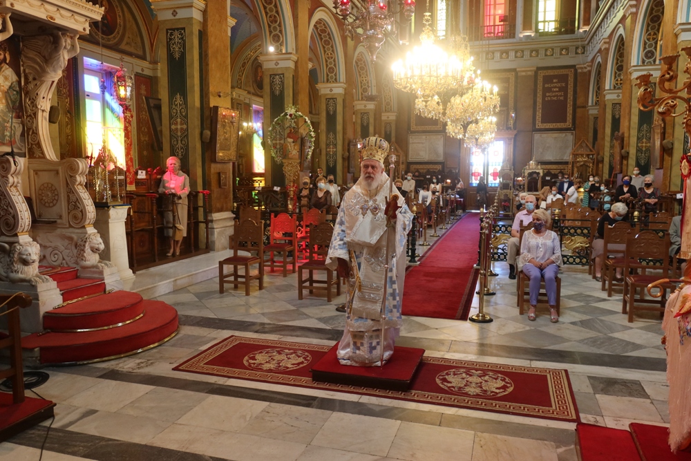 Αρχιερατική Θεία Λειτουργία για την 85η επέτειο της ευρέσεως της θαυματουργού εικόνας του Αγίου Δημητρίου τελέστηκε στον Καθεδρικό Ναό του Αγίου Νικολάου Ερμουπόλεως την Κυριακή 23 Μαΐου 2021, ιερουργούντος του Σεβασμιωτάτου Μητροπολίτη Σύρου κ. Δωροθέου Β’, συμπαραστατουμένου από τους Εφημερίους του Ναού, Αρχιμ. Βενέδικτου Φραγκογιάννη και Οικονόμου Λουκά Βασάλου, παρουσία πλήθους πιστών, μεταξύ των οποίων ο Πρόεδρος του Συνδέσμου Συριανών κ. Δημ. Βαφίας.