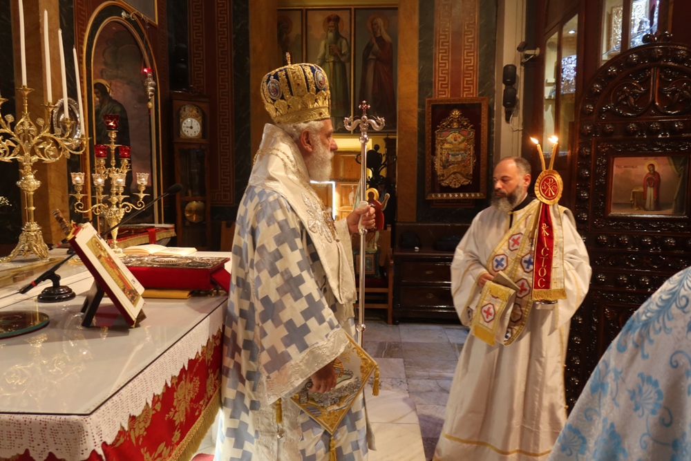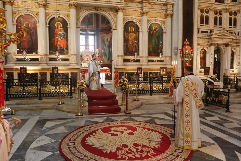 Προ του πέρατος της Θείας Λειτουργίας, τελέστηκε εντός του Ναού λιτανεία του Λαβάρου της Αναστάσεως, του αποτμήματος εκ των τιμίων λειψάνων του Αγίου Νικολάου και των ιερών Εικόνων της Παναγίας «Κυρά-Ξένης» και Αγίου Δημητρίου.