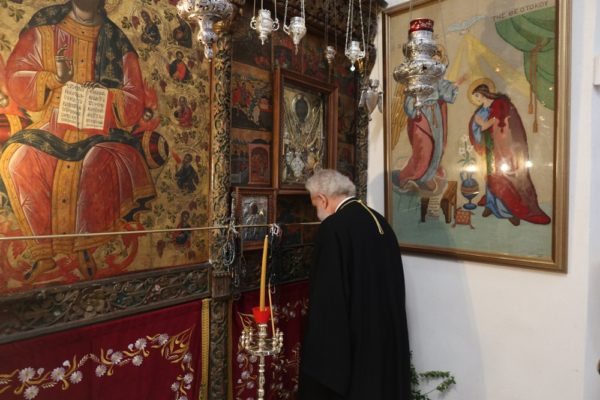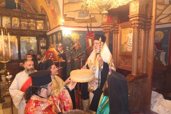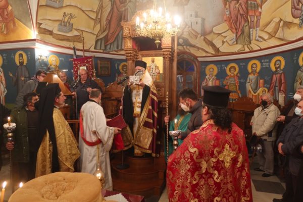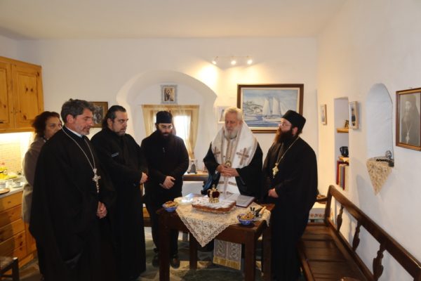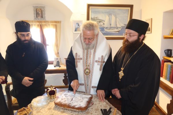 Ακολούθως, επεσκέφθη την Ιερά Μονή Ταξιαρχών και ευλόγησε την πίτα του Αγίου Βασιλείου, ευχηθείς στους εκεί ασκούμενους, Αρχιμ. Ευδόκιμο και τον δόκιμο Μοναχό.