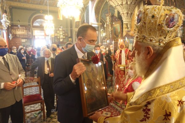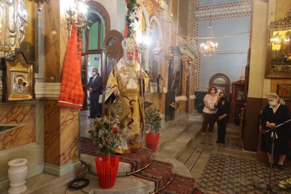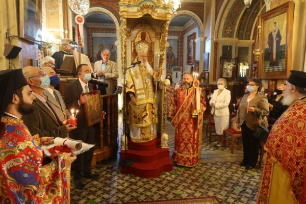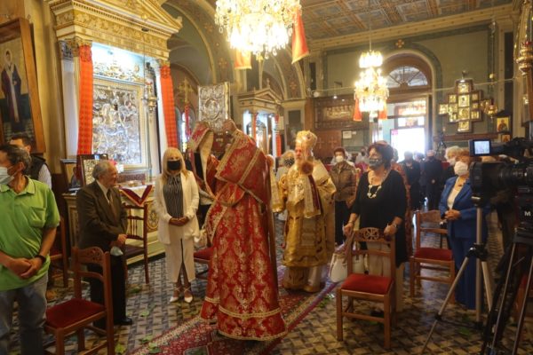 Η Θεία Λειτουργία τελέστηκε με την παρουσία του Συντονιστή της Αποκεντρωμένης Διοίκησης Αιγαίου κ. Πολύκαρπου Πολυχρονάκη, του Θεματικού Αντιπεριφερειάρχη Μεταφορών κ. Μ. Δαδάου, του Δημάρχου Σύρου-Ερμούπολης κ. Νικολάου Λειβαδάρα, της διατελεσάσης Δημοτικής Συμβούλου κας Άννας Βαφία και πιστών, οι οποίοι τήρησαν προσεκτικά τα μέτρα υγειονομικής προστασίας.