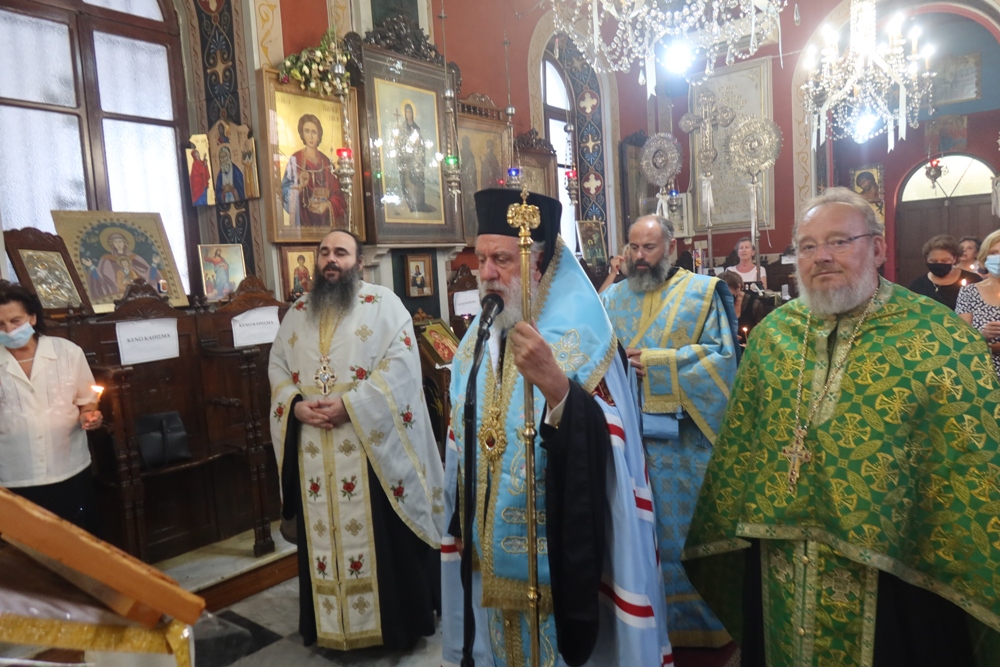 Στην ομιλία του, ο Σεβασμιώτατος κ. Δωρόθεος Β’ αναφέρθηκε στην ιστορική πορεία της καθιερώσεως της εορτής της Κοιμήσεως της Θεοτόκου, από τα πρωτοχριστιανικά χρόνια έως την εποχή του Αυτοκράτορα Μαυρίκιου, ο οποίος την καθιέρωσε επίσημα το 460 μ. Χ., καθώς και στις ιστορικές πληροφορίες που εμπεριέχονται στα Απόκρυφα Ευαγγέλια, περί της Κοιμήσεως, της Ταφής και της Μεταστάσεως της Θεοτόκου. Αναφέρθηκε, ωσαύτως, και στην Ορθόδοξη διδασκαλία για το πρόσωπο της Θεοτόκου, η Οποία εγεννήθη φέρουσα, ως άνθρωπος, το προπατορικό αμάρτημα, από το οποίο απηλλάγη κατά τον Ευαγγελισμό Της, γι’ αυτό και δεν θεωρείται «συλλυτρώτρια», αλλά μεσίτρια υπέρ των ανθρώπων προς τον Υιό Της και Θεό