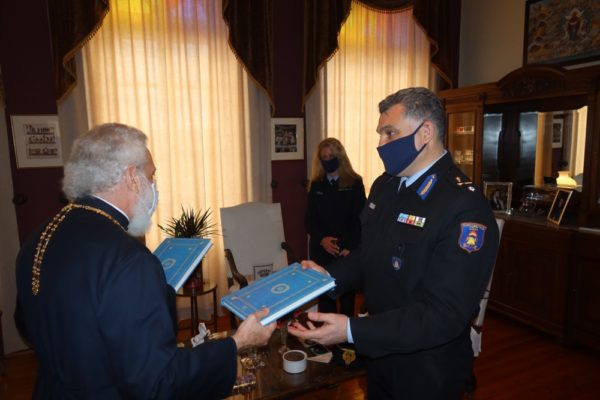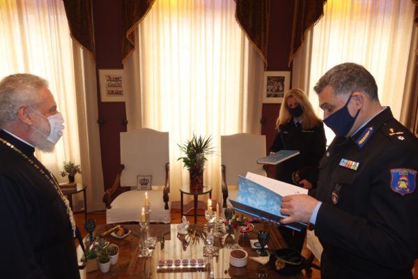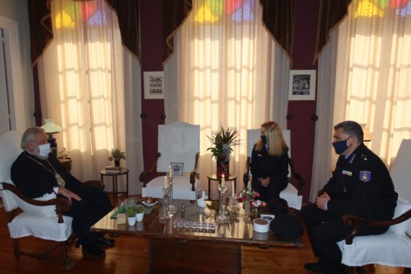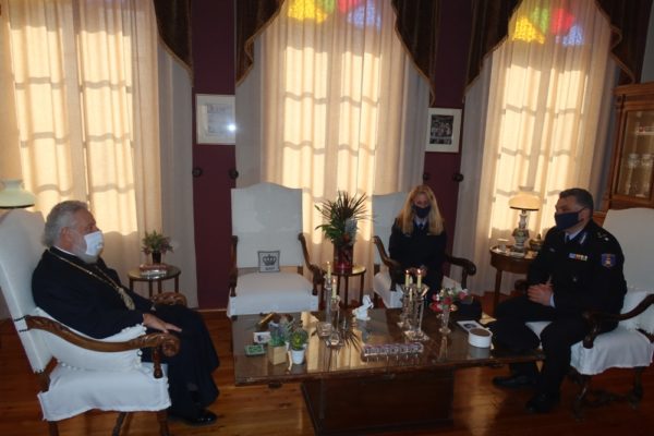 Συνοδευόμενος από την Πύραρχο κα Αναστασία Μαγκλάρα, Διοικήτρια των Πυροσβεστικών Υπηρεσιών Ν. Κυκλάδων, ο νέος Περιφερειακός Διευθυντής των Υπηρεσιών Ν. Αιγαίου Αρχιπύραρχος κ. Παν. Κουτρίδης επεσκέφθη σήμερα στο Επισκοπείο Ερμουπόλεως εθιμοτυπικώς τον Σεβασμιώτατο Μητροπολίτη Σύρου κ. Δωρόθεο Β΄, με τον οποίο είχε μία εποικοδομητική συζήτηση και προς τον οποίο ανέφερε τα στεγαστικά προβλήματα που αντιμετωπίζουν οι Πυροσβεστικές Υπηρεσίες στη Σύρο, του εξέφρασε την αγάπη και το σεβασμό του προς την Εκκλησία και τον διαβεβαίωσε για την συμπράστασή του στο έργο της.