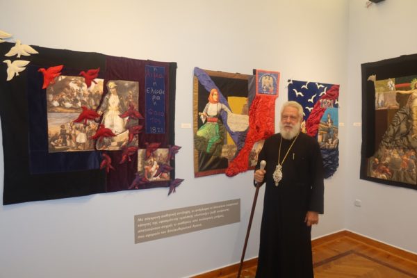 Πρόκειται για μια Έκθεση, που ξεκινάει από τον ζωγράφο Θεόφιλο για να φτάσει σε μερικούς από τους σημαντικότερους σύγχρονους Έλληνες εικαστικούς, με σημεία αναφοράς την ελευθερία, την αξιοπρέπεια και τα ανθρώπινα δικαιώματα, την οποία επιμελήθηκε η ιστορικός τέχνης και θεωρίας του Πολιτισμού στο ΕΚΠΑ κ. Αθηνά Σχινά, την οποία ο Σεβασμιώτατος κ. Δωρόθεος Β’ ιδιαιτέρως συνεχάρη.