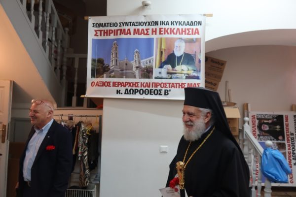 Ο Σεβασμιώτατος κ. Δωρόθεος Β’ τον οποίο σημειωτέον ο Πρόεδρος του Εργατικού Κέντρου Κυκλάδων απεκάλεσε «Μητροπολίτη της καρδιάς μας», στο Χαιρετισμό του ανέφερε τα εξής: