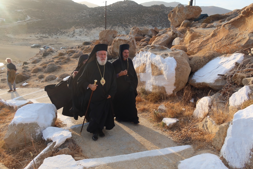 Και όπως ακριβώς», συνέχισε «εμείς απόψε, εν μέσω κακοκαιρίας, ανεβήκαμε το ανηφορικό αυτό μονοπάτι προς τον μικρό αυτό Ιερό Ναό, έτσι και στο πολυτάραχο πέλαγος της ζωής μας πρέπει να είμαστε προσηλωμένοι στο Φάρο τον πνευματικό, τον Ιησού Χριστό, ο Οποίος κατευθύνει το πλοίο της ζωής μας σε απάνεμα λιμάνια γαλήνης και σωτηρίας».
