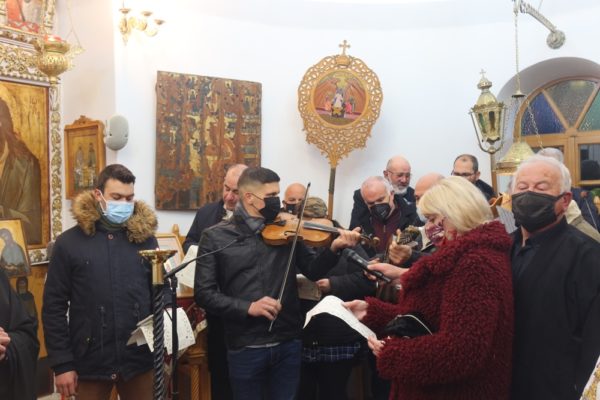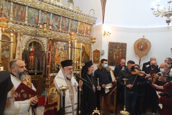 Ακολούθως ευλόγησε την Αγιοβασιλειόπιττα και άπαντες οι παριστάμενοι, με τη συνοδεία παραδοσιακών οργάνων, έψαλαν ομοθυμαδόν τα πολύστιχα Κάλαντα της Σίφνου, με τα οποία οι Σίφνιοι βρήκαν την ευκαιρία να ευχαριστήσουν τον Σεβασμιώτατο κ. Δωρόθεο Β’ για το ενδιαφέρον και την αγάπη του προς τα νησιά και τους κατοίκους τους, τους οποίους επισκέπτεται συχνά, χωρίς να υπολογίζει κύματα θαλάσσης, κούραση και ταλαιπωρία, προκειμένου να βρίσκεται κοντά τους, χαίρων μετά χαιρόντων και κλαίων μετά κλαιόντων, μεταξύ άλλων και τα παρακάτω τετράστιχα, συνθέσεις της κας Αικατερίνης Κοντού: