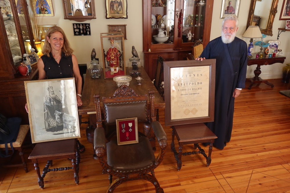 Σήμερα το πρωί, Τετάρτη 25 Αυγούστου, η ανεψιά τρίτης γενιάς του αοιδίμου Μητροπολίτου, κα Βασιλική Ηλιοπούλου-Κατωπόδη, συνοδευόμενη από τον σύζυγό της, επεσκέφθη στο Επισκοπείο Ερμουπόλεως τον Σεβασμιώτατο κ. Δωρόθεο Β΄ και του προσέφερε την πολυθρόνα, τα παράσημα, πολύτιμο ιστορικό φωτογραφικό υλικό και το πτυχίο από τις μεταπτυχιακές σπουδές στη Λειψία της Γερμανίας, τα οποία επί δεκαετίας εφυλάσσοντο στην οικία της αειμνήστου μητρός της Καλλιόπης Ηλιοπούλου, το γένος Λεβεντοπούλου, που συνεδέετο με τον Σεβασμιώτατο κ. Δωρόθεο Β΄με αμοιβαίους δεσμούς φιλίας και εκτιμήσεως.