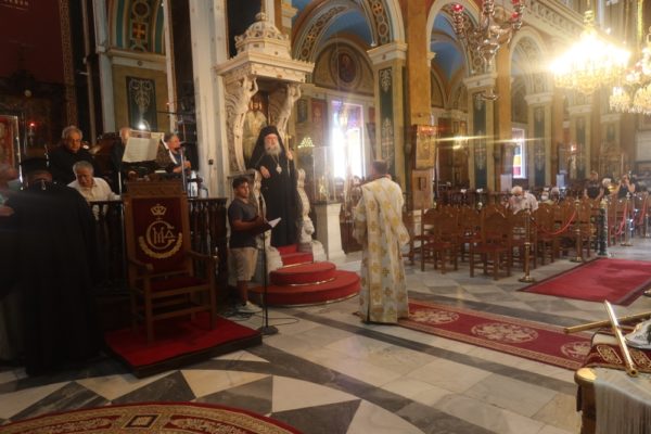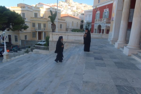 Προεξάρχοντος του Σεβασμιωτάτου Μητροπολίτου Παροναξίας κ. Καλλινίκου και συνιερουργούντος του Σεβασμιωτάτου κ. Δωροθέου Β’, χωρίς την προγραμματισμένη συμμετοχή του Σεβασμιωτάτου Μητροπολίτου Θηβών κ. Γεωργίου, ο οποίος παρέμεινε κοντά στο δοκιμαζόμενο από τις καταστροφικές πυρκαϊές ποίμνιό του, και του Θεοφιλεστάτου Επισκόπου Ρωγών κ. Φιλοθέου, ο οποίος αναχώρησε από τη Σύρο λόγω έκτακτων λειτουργικών του υποχρεώσεων, τελέσθηκε σήμερα στον Ιερό Καθεδρικό Ναό του Αγίου Νικολάου Ερμουπόλεως Δισαρχιερατική Θεία Λειτουργία και ιερό Μνημόσυνο του αοιδίμου Ερμουπολίτου Μητροπολίτου Πολυανής και Κιλκισίου Εμμανουήλ, ο οποίος εμαθήτευσε τα ιερά Γράμματα στο ιερό Βήμα του Ναού, παρά τους αειμνήστους Αρχιμανδρίτες Γρηγόριο Μαραγκό και Τιμόθεο Δραγάση.