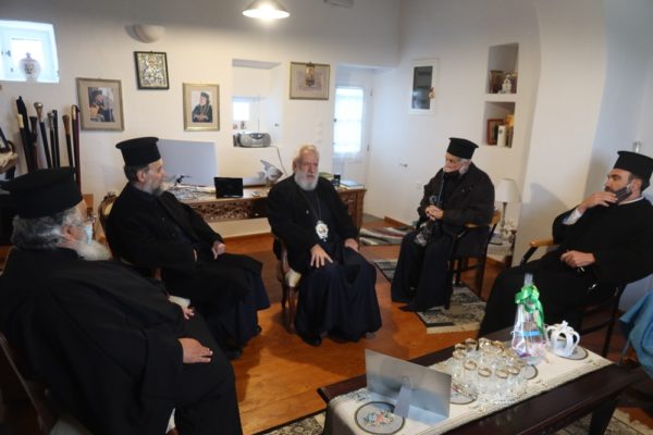 Άμα τη αφίξει του, προέστη Ιερατικής Συνάξεως των Εφημερίων του νησιού, στην Ιερά Μονή Βρύσης, κατά την οποία συζητήθηκαν ποιμαντικά θέματα, που αφορούν, κυρίως, την πνευματική διαχείριση της πανδημίας και τη θεραπεία των συνεπειών της στη λειτουργική ζωή της Εκκλησίας και τη συμμετοχή των πιστών σ’ αυτήν.