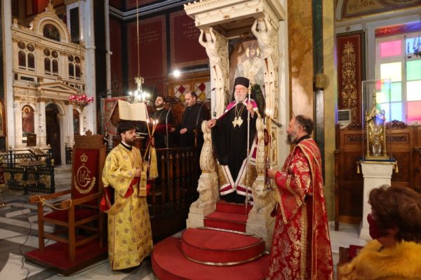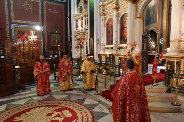 Με την τήρηση των ισχυόντων μέτρων υγειονομικής προστασίας, ο Σεβασμιώτατος Μητροπολίτης Σύρου κ. Δωρόθεος Β’ ιερούργησε σήμερα το πρωί στον Ιερό Καθεδρικό Ναό του Αγίου Νικολάου Ερμουπόλεως, με τη συμμετοχή των Διακόνων του και των Εφημερίων του Ναού, Αρχιμ. Βενεδίκτου Φραγκογιάννη και Οικονόμου Λουκά Βασάλου, ενώ το αναλόγιο διηκόνησαν ο Αρχιμ. Νικόλαος Γαβαλάς και οι Δομέστικοι Ευάγγελος Χάλαρης και Κων. Κουτσός.