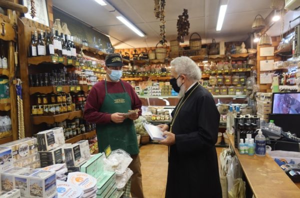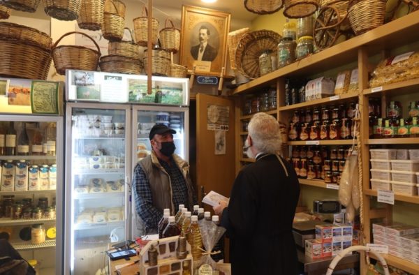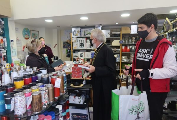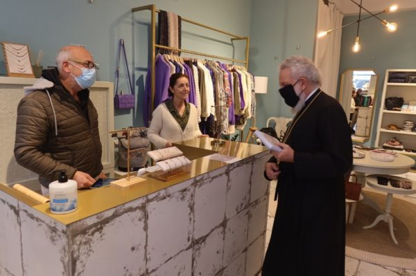 Ο Σεβασμιώτατος Μητροπολίτης Σύρου κ. Δωρόθεος Β΄, τηρώντας προσεκτικά τα υγειονομικά πρωτόκολλα, περιήλθε σήμερα τα Καταστήματα της αγοράς της Ερμουπόλεως, τα εστιατόρια, τις καφετέριες, τα ταξιδιωτικά γραφεία, το σταθμό των Ταξί, την Πλατεία και τους γύρο δρόμους, ευχήθηκε στους επιχειρηματίες, καταστηματάρχες, εργαζομένους και πολίτες για το νέο έτος και διένειμε δώρα και ευλογίες, γενόμενος από όλους δεκτός με πηγαίες εκδηλώσεις σεβασμού και αγάπης, στο πλαίσιο της εορταστικής περιοδείας του που εκτελεί κάθε χρόνο.