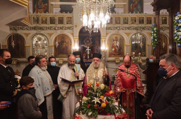Τέλος, ευχήθηκε οι ημέρες του 2022 να είναι ημέρες αγάπης και συνεργασίας, χωρίς φόβο και με σεβασμό προς τον διπλανό μας, ευχαρίστησε τον Εφημέριο του Ναού και τους συνεργάτες του για το υπ’ αυτών επιτελούμενο έργο και διένειμε προς τους παρισταμένους την Αγιοβασιλειόπιττα, με δώρα και ευλογίες.