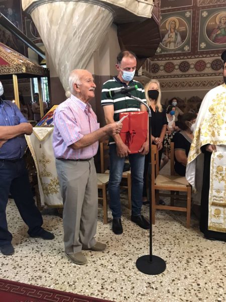 Τον Σεβασμιώτατο προσεφώνησε και καλωσόρισε στο χωριό τους ο πολιός εκατονταετούτης δάσκαλος του Δημοτικού Σχολείου κ. Δημήτριος Γκούρλης και ο Πρόεδρος του χωριού κ. Δημήτριος Χριστόπουλος.