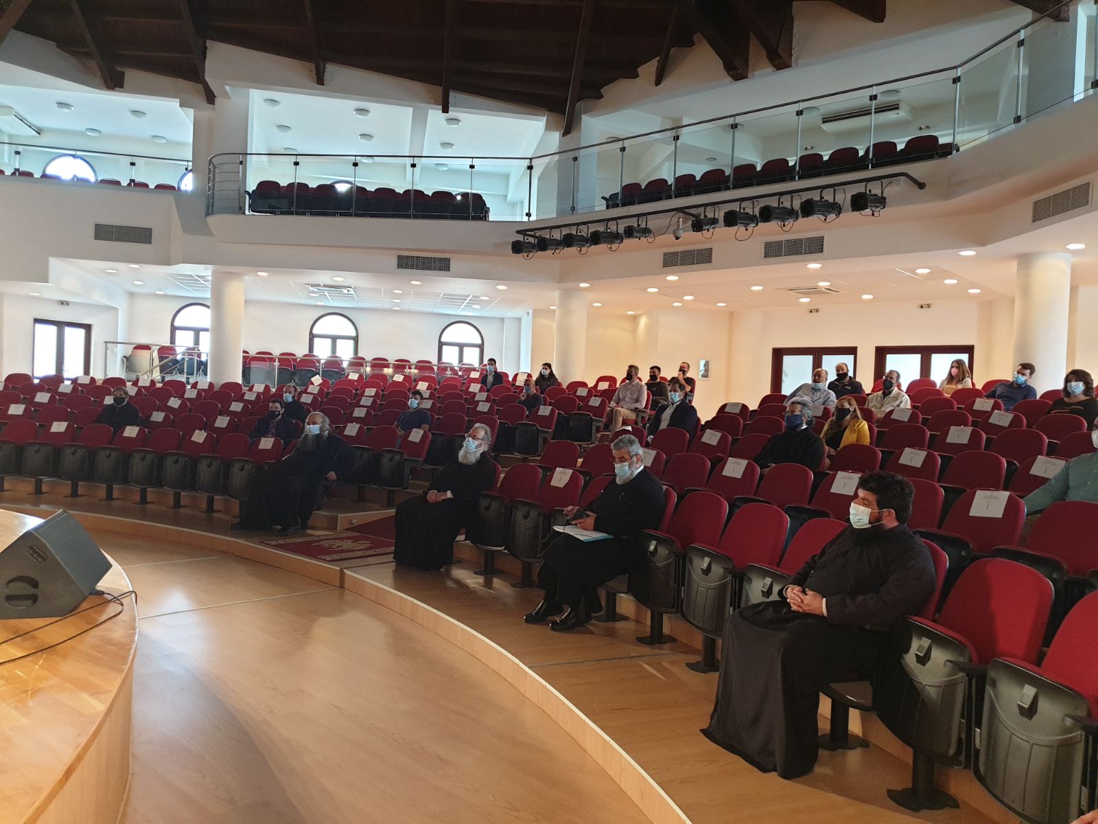 Νωρίτερα ο Σεβασμιώτατος στο Αμφιθέατρο του Πνευματικού και Διοικητικού Κέντρου της Μητροπόλεως στη Λαμία, διένειμε δωρεάν συσκευασίες με προστατευτικές μάσκες τύπου Κ-95 στο προσωπικό της Μητροπόλεως και των Ιδρυμάτων της.