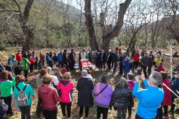 Ευλογία βασιλόπιτας του Ελληνικού Ορειβατικού Συλλόγου Λαμίας δίπλα στο ποτάμι του Ξεριά