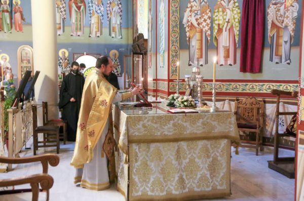 Προ της απολύσεως ο Σεβασμιώτατος ευχήθηκε στον άγοντα τα ονομαστήριά του Πανοσιολ. Αρχιμ. π. Βαρθολομαίο Κάσση, Εφημέριο Ιεροκήρυκα της Ιεράς Μητροπόλεως και Ιερατικό Προϊστάμενο της Ενορίας, να έχει έτη πολλά, να διακονεί την Εκκλησία με ζήλο, αυταπάρνηση, φιλοτιμία και με εργατικότητα.
