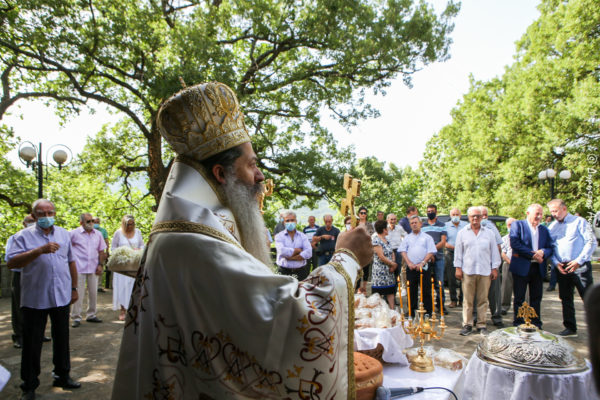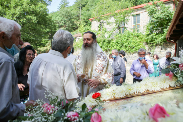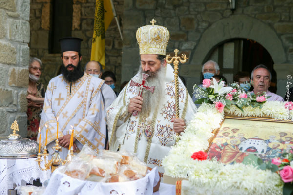 Ακολούθως στην γραφική αυλή του Ναού με την καταπληκτική θέα ο Σεβασμιώτατος κ. Συμεών ευλόγησε τους άρτους και ελ μέρους των κατοίκων του χωριού προσεφώνησε και καλωσόρισε ο εξυπηρετών Εφημέριος του χωριού π. Ιωάννης Σουφλερός και η Πρόεδρος του χωριού κ. Ιωάννα Αντωνίου.