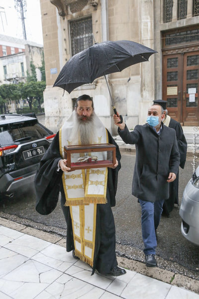 Σήμερα το πρωί,  τα Ιερά Λείψανα των Φθιωτών Αγίων μεταφέρθησαν με αυτοκινητοπομπή από το Επισκοπείο στον Ιερό Μητροπολιτικό Ναό και ευθύς ο Σεβασμιώτατος κ. Συμεών πλαισιούμενος από ιερείς και διακόνους ετέλεσε το Μυστήριο του Ιερού Ευχελαίου, αγιάζοντας και εκατοντάδες φιαλίδια με έλαιο, τα οποία θα διανεμηθούν προς παρηγορία και ενίσχυση των πιστών.