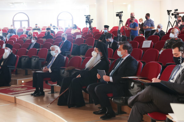 Και έκανε γνωστό ότι «μέσα σὲ αὐτὸ τὸ πλαίσιο πραγματοποιήσαμε μέχρι τώρα ἤδη 17 σημαντικὲς ἐκδηλώσεις καὶ δράσεις, χωρὶς μάλιστα τὴν φυσικὴ παρουσία κοινοῦ ἕνεκα τῆς πανδημίας, ἀξιοποιῶντας ὅμως τὶς σύγχρονες τεχνολογικὲς δυνατότητες, καὶ σήμερα βρισκόμαστε στὴν εὐχάριστη θέση νὰ πραγματοποιοῦμε αὐτὸ τὸ σημαντικὸ Εἰδικὸ Ἐπιστημονικὸ Συνέδριο, γιὰ τὸ περιεχόμενο καὶ τοὺς στόχους τοῦ ὁποίου μᾶς μίλησε ἤδη ὁ Κοσμήτωρ τὴς Θεολογικῆς Σχολῆς Ἀθηνῶν κ. Χρῆστος Καραγιάννης. Στὸ προσεχὲς δὲ διάστημα, μέχρι τὸ τέλος τοῦ ἔτους, ἔχουμε προγραμματίσει 50 ἀκόμη ἐκδηλώσεις καὶ δράσεις. Ἐκλεκτοὶ Πανεπιστημιακοὶ Δάσκαλοι τιμοῦν μὲ τὴν παρουσία τους καὶ κοσμοῦν μὲ τὴν συμμετοχή τους τὸ σημερινό μας Συνέδριο. Ἐξόχως τιμητικὴ γιὰ μᾶς ἡ συμμετοχὴ τοῦ Ἐλλογιμωτάτου κ. Μελετίου Ἀθανασίου Δημόπουλου, Πρυτάνεως τοῦ Ἐθνικοῦ Καποδιστριακοῦ Πανεπιστημίου Ἀθηνῶν, τὸν ὁποῖο καὶ εὐχαριστῶ ἀπὸ καρδιᾶς. Ἐπίσης, ὀφείλω εὐχαριστία καὶ στὴν ἀγαπητὴ Δημοσιογράφο κ. Μάγδα Τσέγκου, ἡ ὁποία παρουσιάζει τὴν πρώτη μέρα τοῦ Συνδερίου μας».