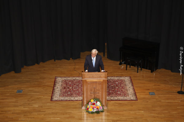Με ιδιαίτερα θερμά λόγια ομίλησαν ο Πρύτανης του Ε.Κ.Π.Α. κ. Μελέτιος Αθανάσιος Δημόπουλος και ο Κοσμήτωρ της Θεολογικής Σχολής του Ε.Κ.Π.Α. κ. Χρήστος Καραγιάννης.