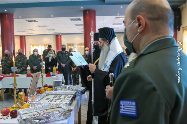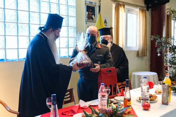 Ο Διοικητής του Κέντρου ευχαρίστησε τον Σεβασμιώτατο κ. Συμεών για την τιμητική αποδοχή της προσκλήσεως και την ευλογητή παρουσία του στο στρατόπεδο και εκ μέρους όλων του ευχήθηκε καλή, ευλογημένη και καρποφόρα χρονιά με δύναμη και υγεία για την συνέχιση του πλούσιου και πολυποίκιλου ποιμαντικού έργου του στην Φθιώτιδα και στην τοπική Εκκλησία.