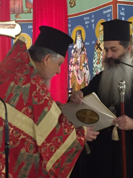 Εις ένδειξιν τιμής και πατρικής αγάπης ο Σεβασμιώτατος κ. Συμεών επέδωσε ως ευλογία στον π. Νεόφυτο έναν επιστήθιο Σταυρό ιστορικής και πνευματικής σημασίας και αξίας, ενώ στον π. Ευθύμιο προσέφερε ένα χειροποίητο επιγονάτιο.