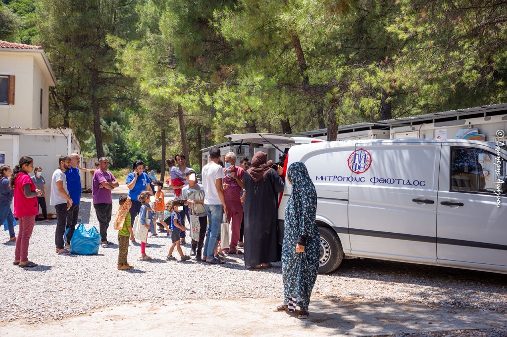Ο κ. Συμεών φορτώνοντας το όχημα μεταφοράς του «Αποθετηρίου της Αγάπης» (Logistic Center) της Μητροπόλεως με βρεφικές πάνες, με κιβώτια με ποσότητες γάλακτος και με σχολικές τσάντες, που έφτιαξαν με τα χεράκια τους άλλα παιδάκια από τις εκπαιδευτικές δομές της Μητροπόλεως, επισκέφτηκε την δομή φιλοξενίας προσφύγων στις Θερμοπύλες και μετέδωσε το μήνυμα του Ευαγγελίου και της αγάπης του Χριστού σε 37 βρέφη εώς 3 ετών, σε 52 νήπια έως 6 ετών, σε 51 παιδιά εώς 14 ετών και σε 9 έφηβους έως 18 ετών και στους γονείς τους.