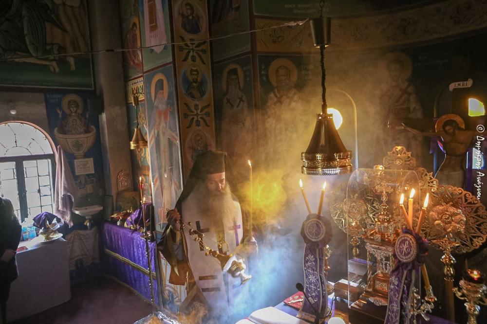 Προ της απολύσεως ο Σεβασμιώτατος απευθυνόμενος προς την Γερόντισσα της Μονής Μοναχή Ειρήνη και την Ιερά Αδελφότητα και τους ακροατές του Ραδιοφώνου και του διαδικτύου αναφέρθηκε στον ψαλμικό στίχο του Εσπερινού «Κατευθυνθήτω ἡ προσευχή μου, ὡς θυμίαμα ἐνώπιον σου…», ο οποίος ιδιαίτερα δεσπόζει κατά την Θεία Λειτουργία των Προηγιασμένων Τιμίων Δώρωνκαι χαρακτηριστικά ανέφερε: