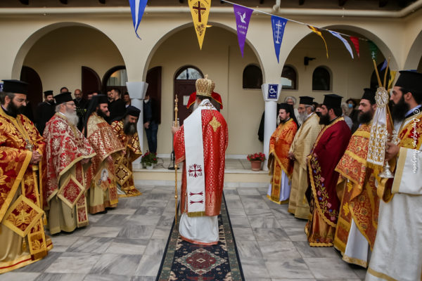 Ανήμερα της Εορτής, Τετάρτη της Διακαινησίμου 5 Μαΐου, ο Σεβασμιώτατος κ. Συμεών ετέλεσε την Αναστάσιμη Αρχιερατική Θεία Λειτουργία.