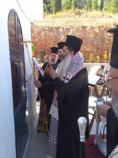 Ο Σεβασμιώτατος συνεχάρη την δωρήτρια κ. Ευανθία Σιμιτζή, τον Προϊστάμενο της Ενορίας, Πρωτ. π. Μιχαήλ Πατσιάδη και τα μέλη του Εκκλησιαστικού Συμβουλίου για την ανέγερση του Ιερού Παρεκκλησίου και χαρακτηριστικά σημείωσε: