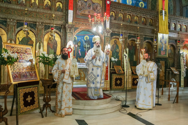 Θα τιμάται η μνήμη περισσότερων από χιλίων Αγίων, των οποίων η μοναδική Ιερά Εικόνα με τις άοκνες προσπάθειες του φιλάγιου, φιλότεχνου, πολιού, ρέκτου και σεβασμίου Γέροντος Αρχιμ. π. Χριστοφόρου Κολοκυθά, του και Προϊσταμένου του Ναού θησαυρίζεται στον Ιερό Ναό.